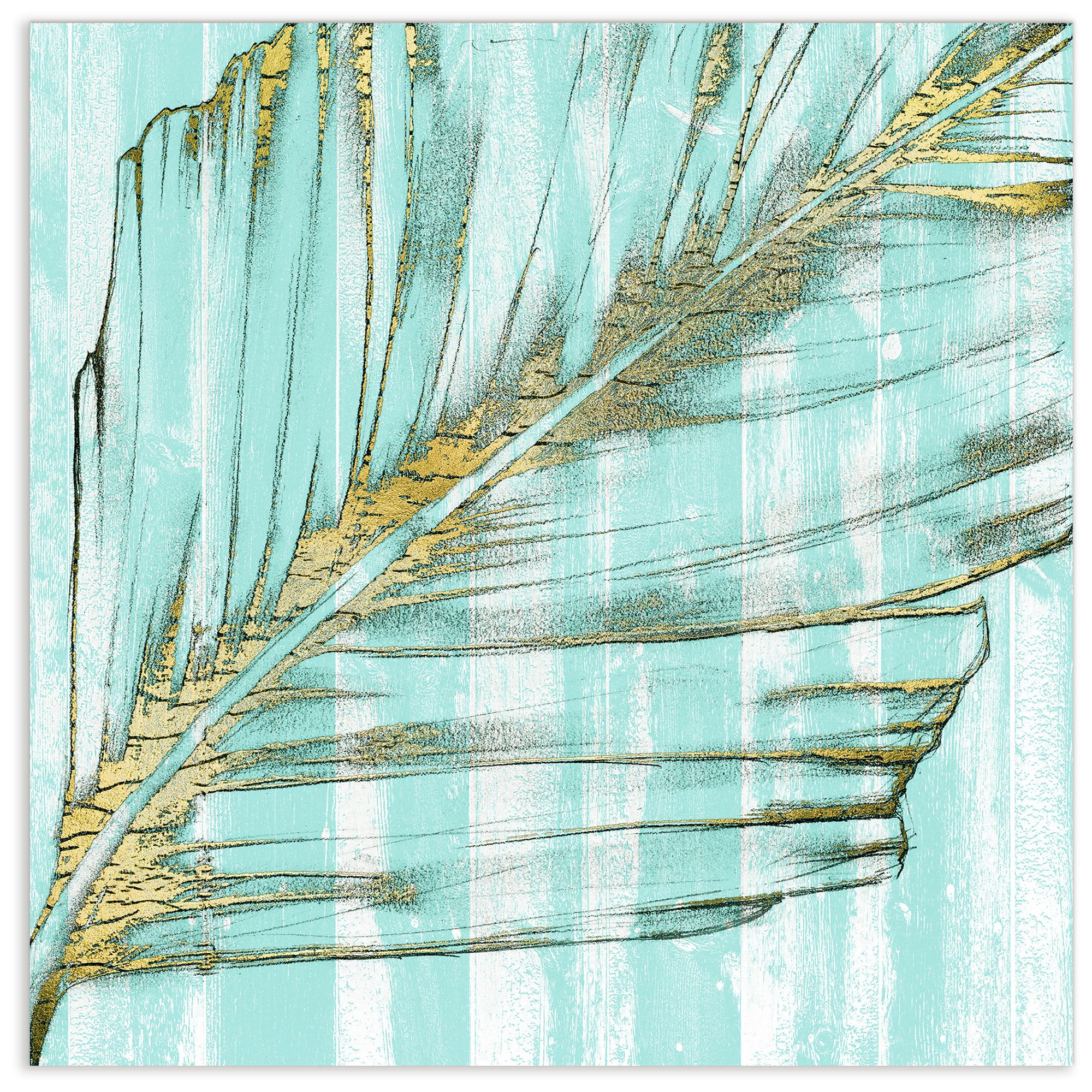 Beach Frond in Gold I" Frameless Free Floating Tempered Art Glass Wall
