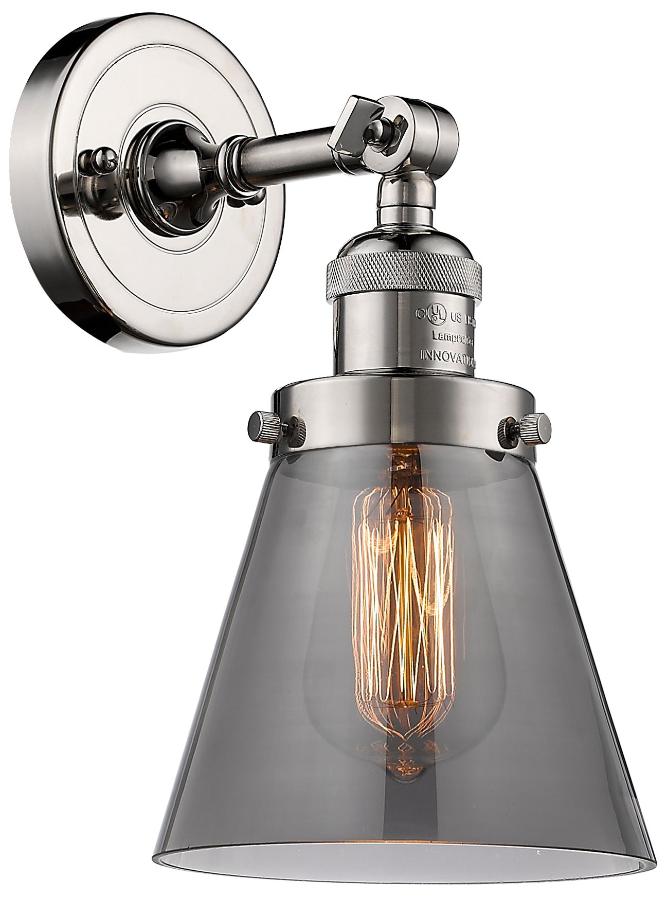 Franklin Restoration Small Cone 6" Polished Nickel Sconce w/ Smoke Sha