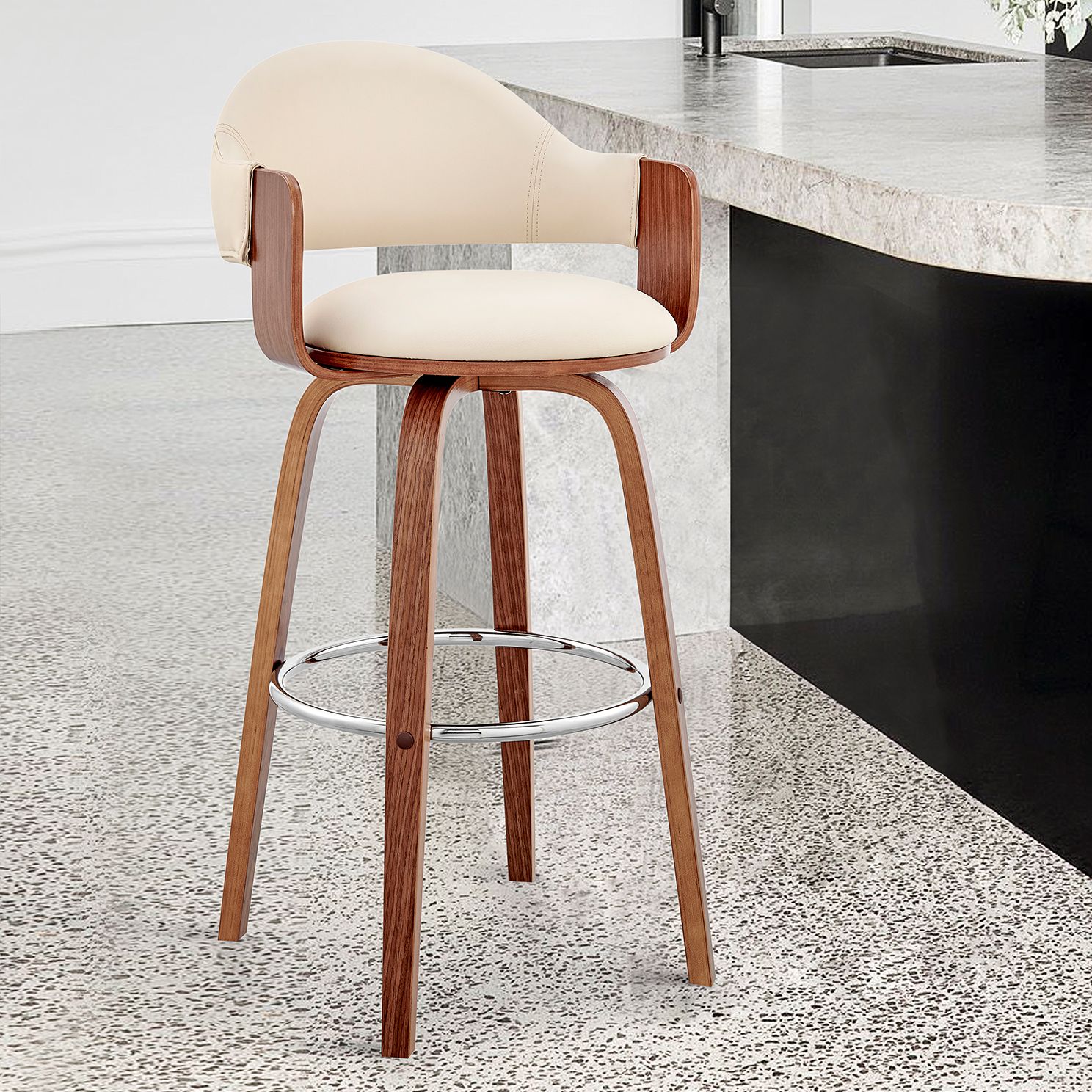 Daxton 30" Walnut and Cream Faux Leather Swivel Bar Stool