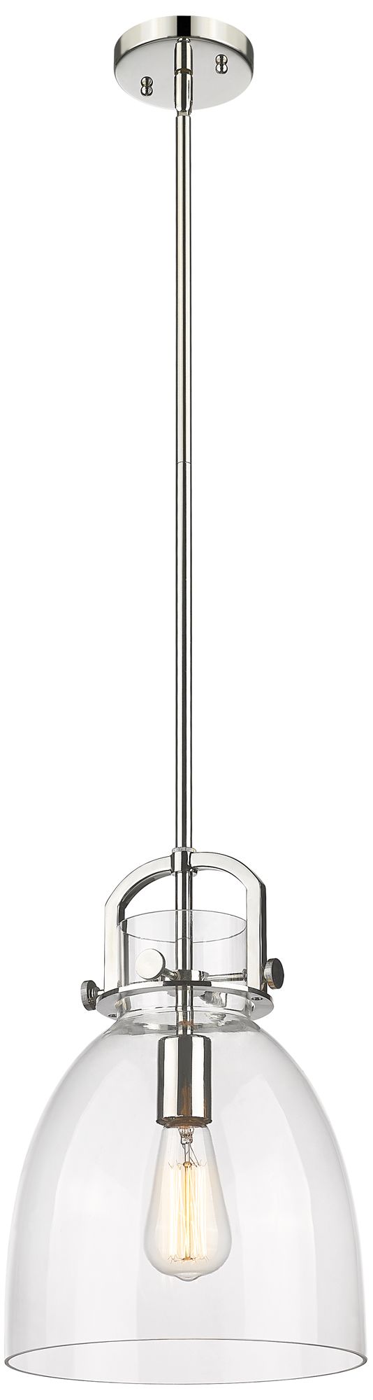 Newton Bell 10" Wide Stem Hung Polished Nickel Pendant With Clear Shad