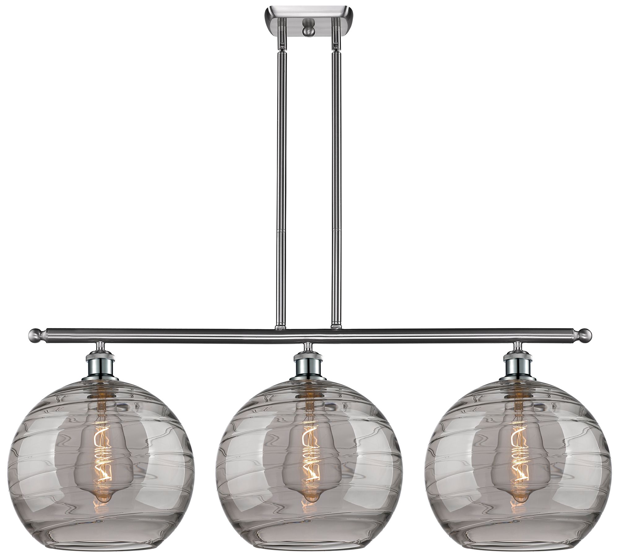 Athens 38.5"W 3-Light Satin Nickel Stem Island Light w/ Smoke Swirl Sh