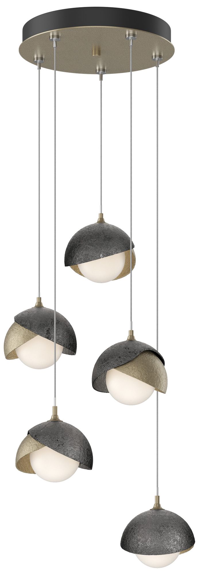 Brooklyn 16"W 5-Light Ink Accented Soft Gold Long Opal Double Shade Pe