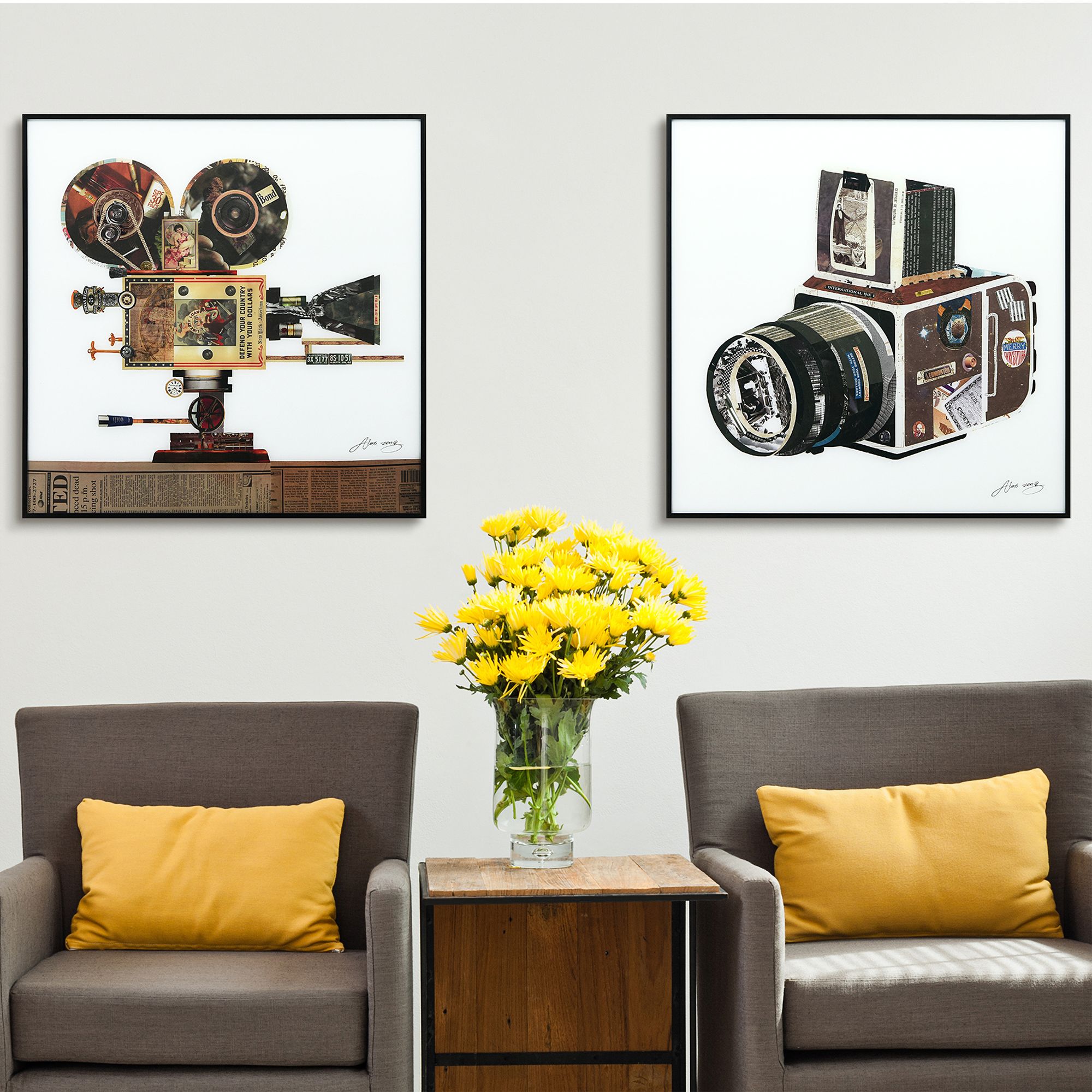 Antique Film Projector and SLR Camera 24" High Wall Art Set