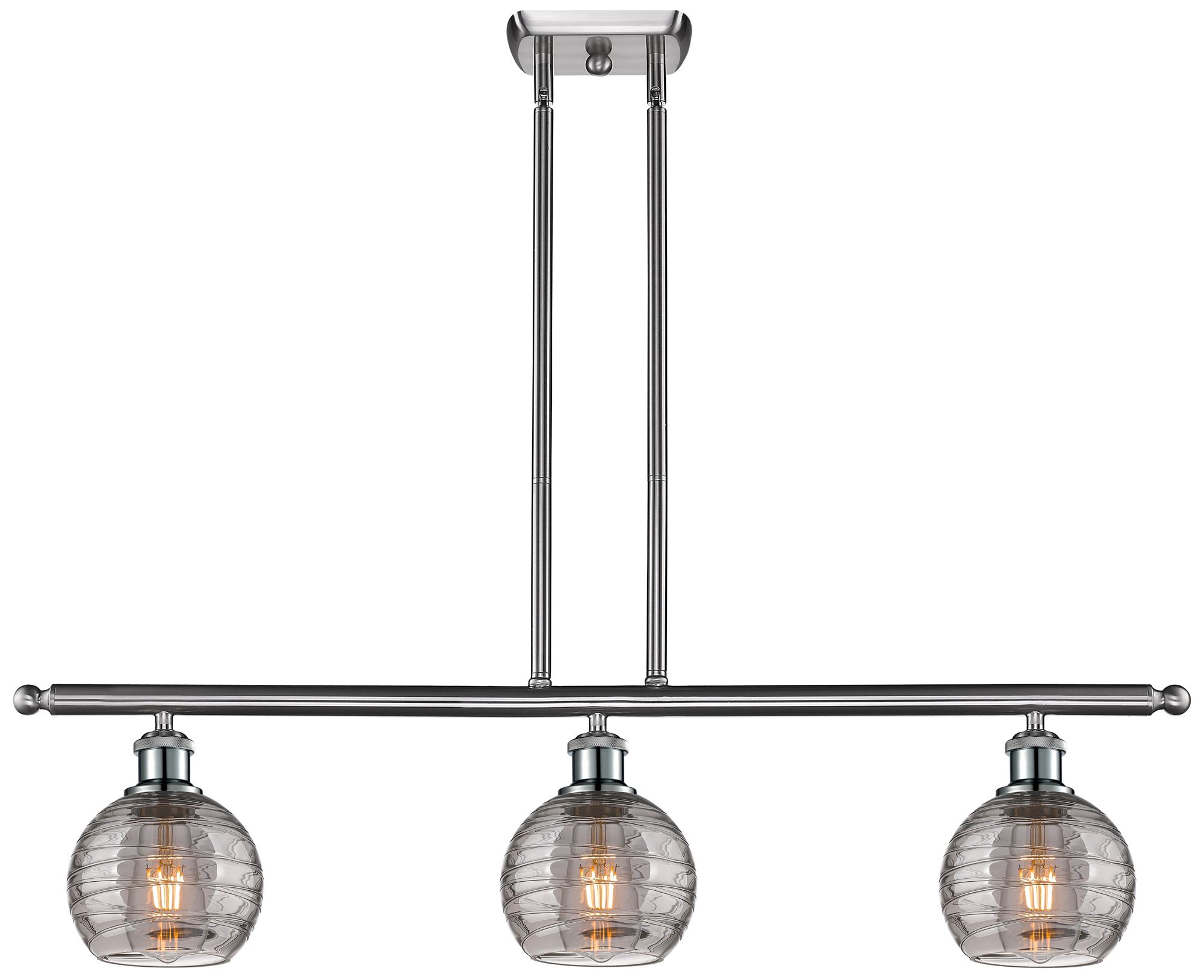 Athens 36"W 3-Light Satin Nickel Stem Island Light w/ 6" Smoke Sw