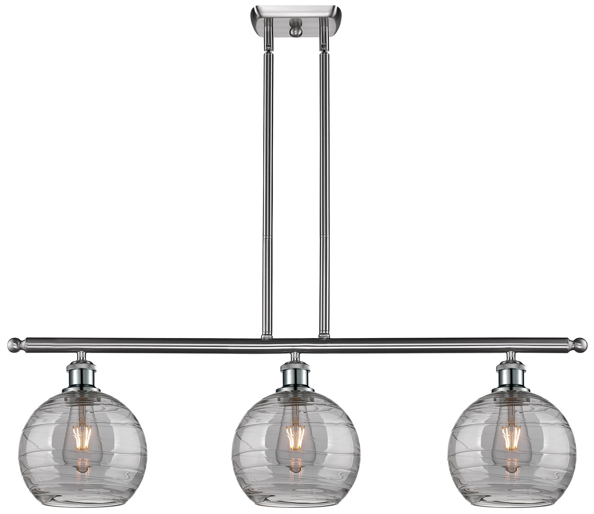 Athens 36"W 3-Light Satin Nickel Stem Island Light w/ 8" Smoke Sw