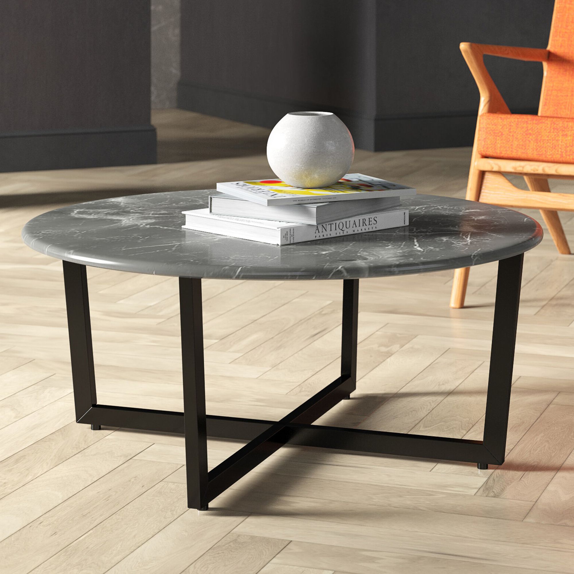 Llona 36" Wide Black Marble Steel Round Coffee Table
