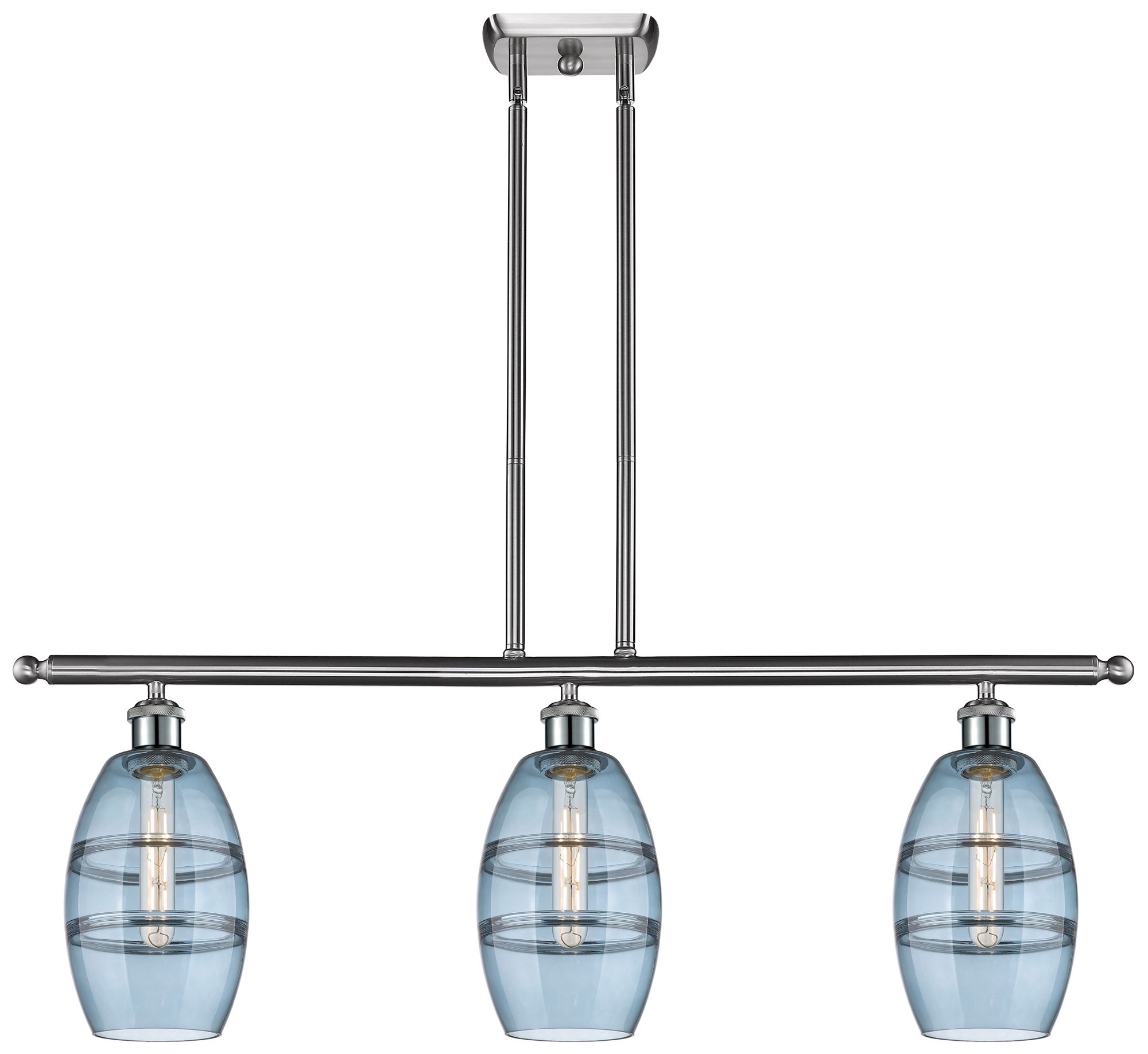 Ballston Vaz 36"W 3-Light Satin Nickel Stem Island Light w/ 6" Bl