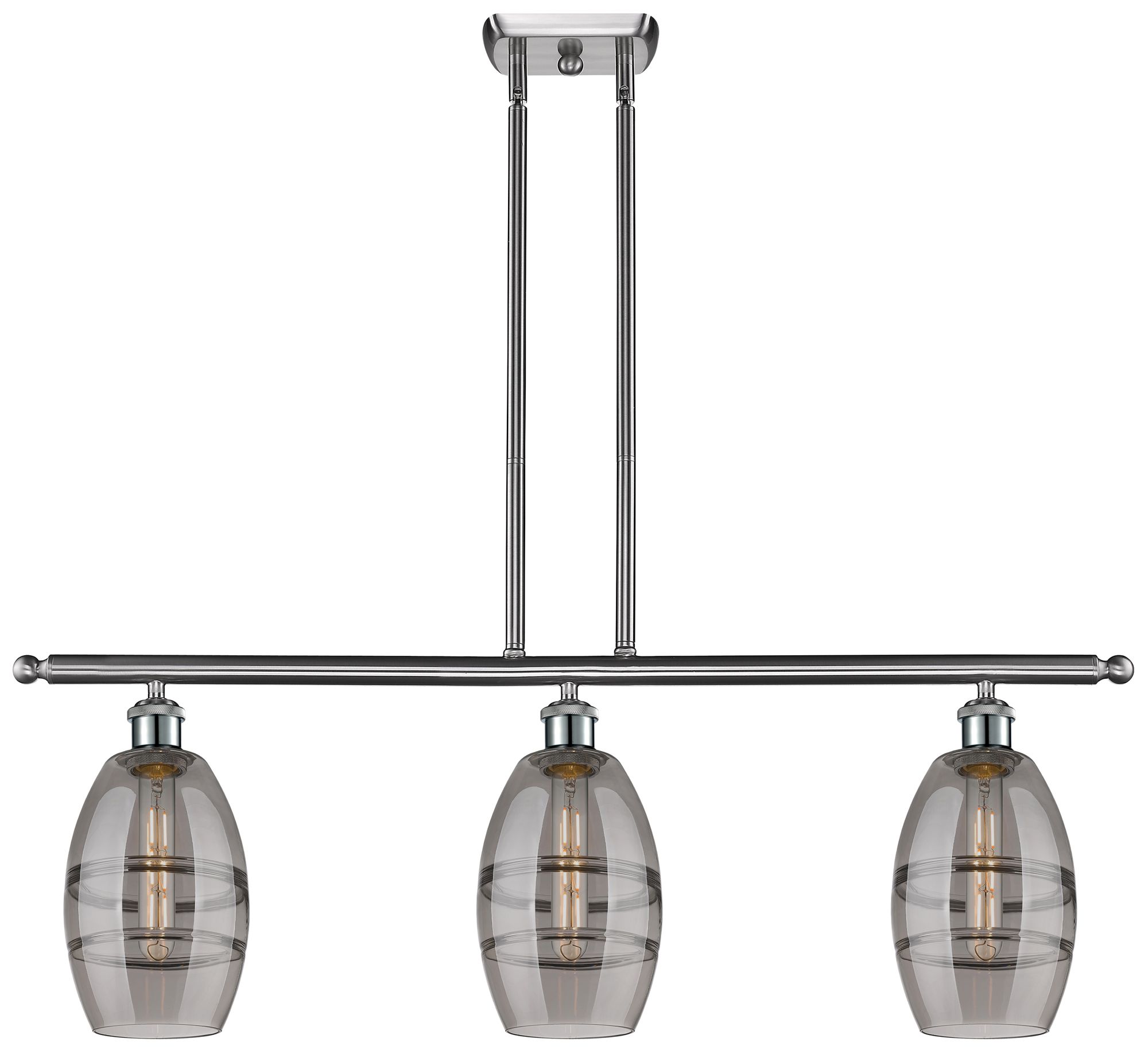 Ballston Vaz 36"W 3-Light Satin Nickel Stem Island Light w/ 6" Sm