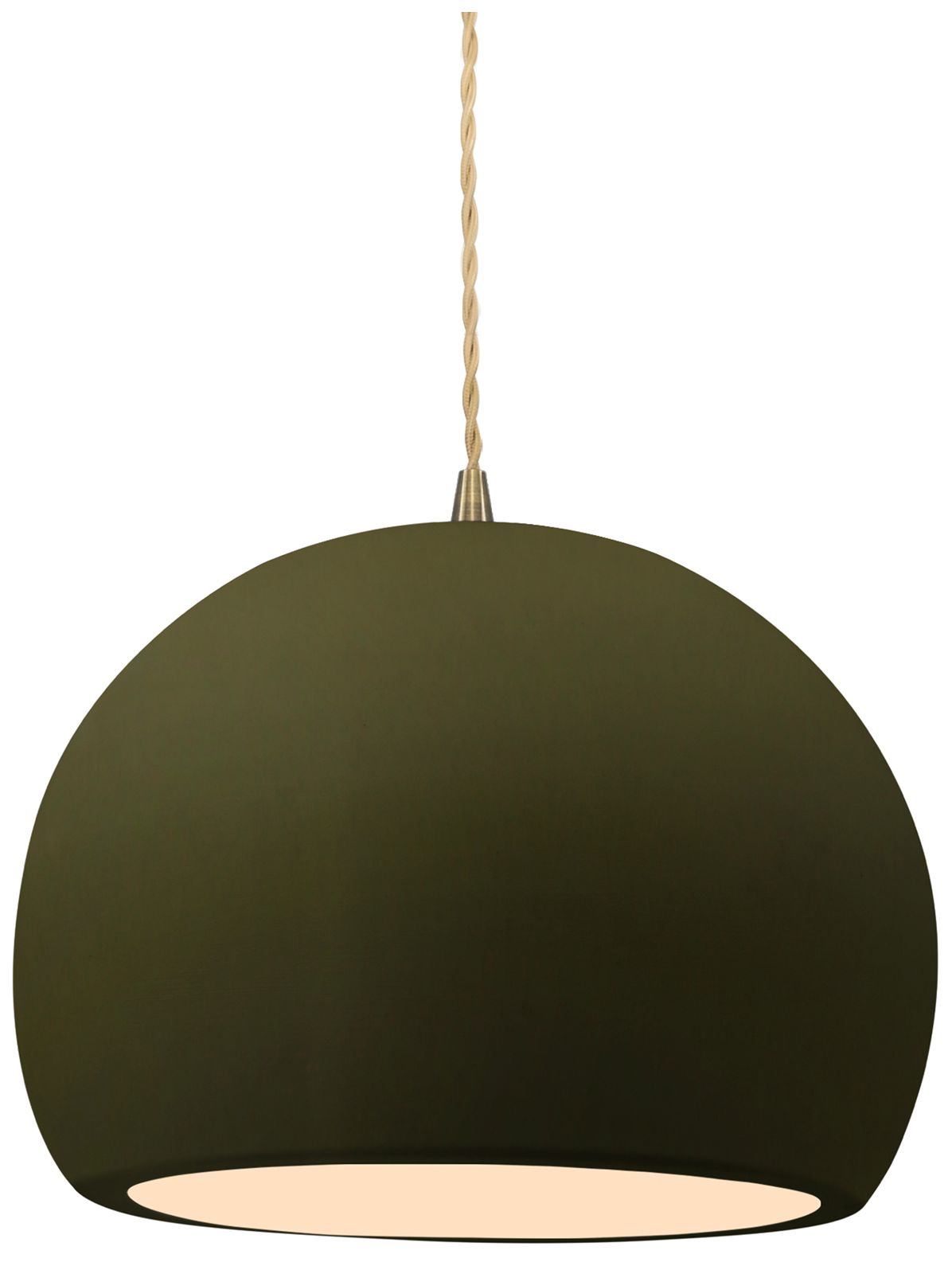 10"W Matte Green Frame Antique Brass Globe Beige Twisted Cord LED Pend