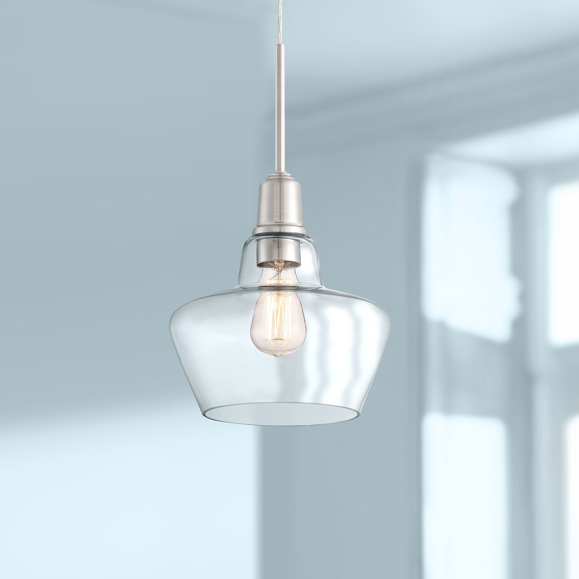 Madoc 9 3/4"W Brushed Nickel and Clear Glass Mini Pendant