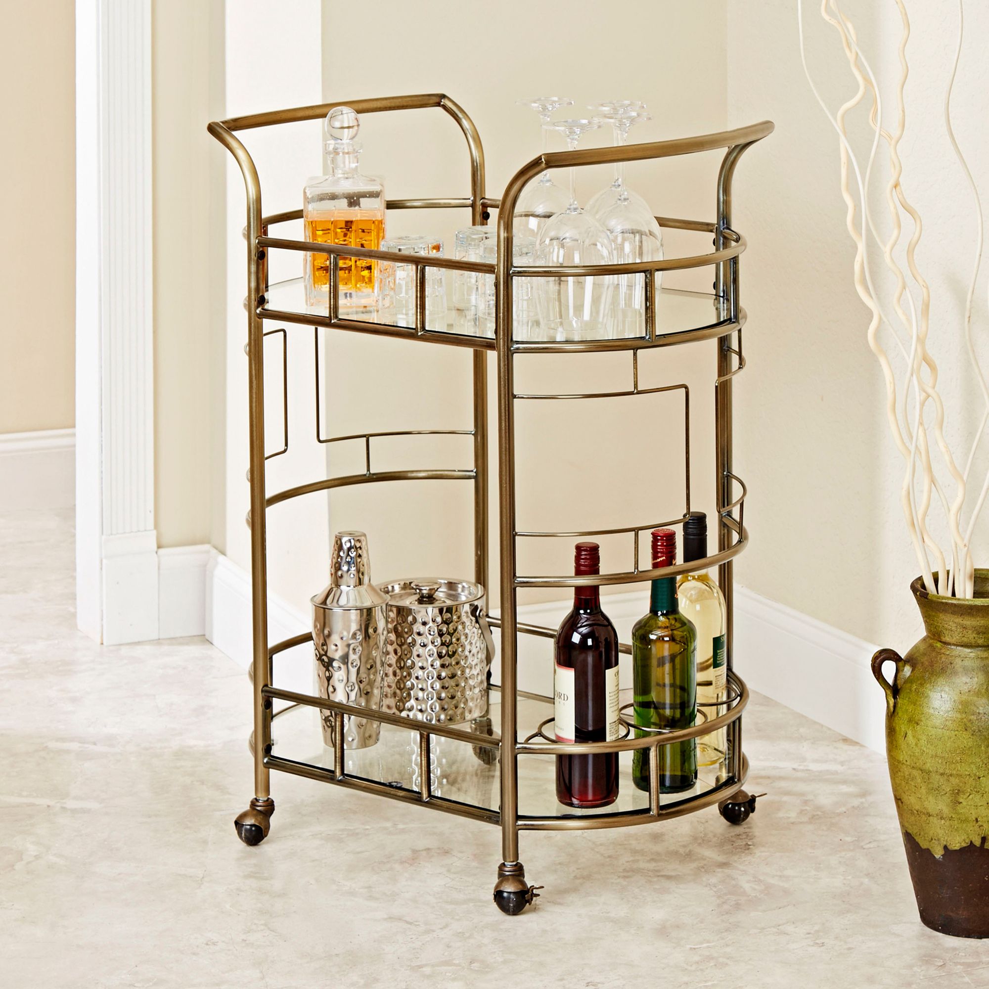 Sinclair 26 1/2" Antique Gold and Glass 2-Tier Serving Bar Cart
