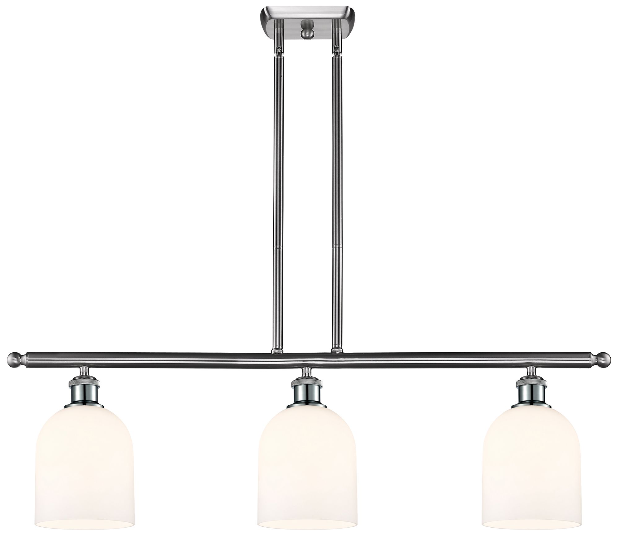 Bella 36"W 3-Light Satin Nickel Stem Island Light w/ Gloss White Shade