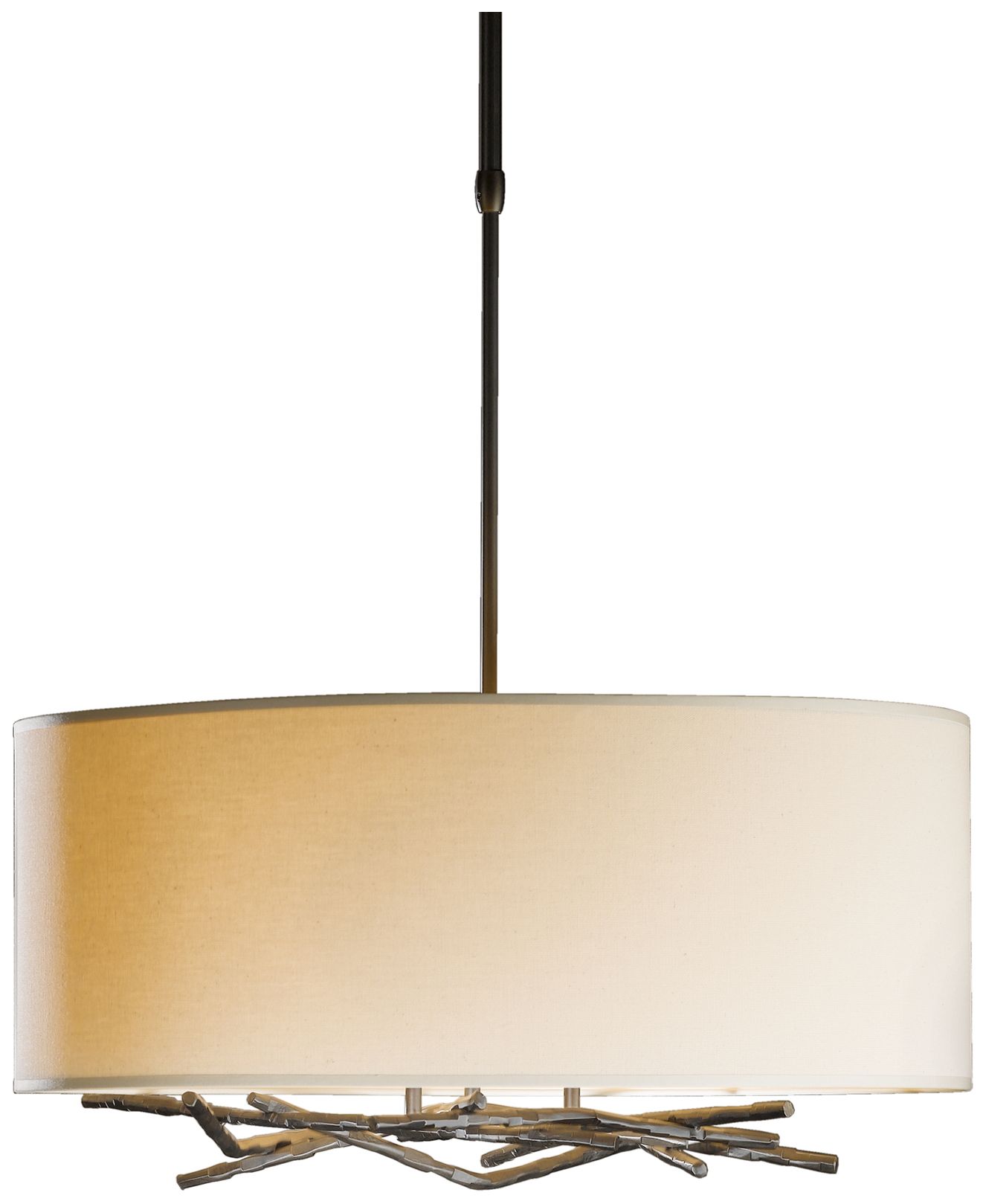 Brindille 22" Wide Dark Smoke Pendant With Drum Flax Shade