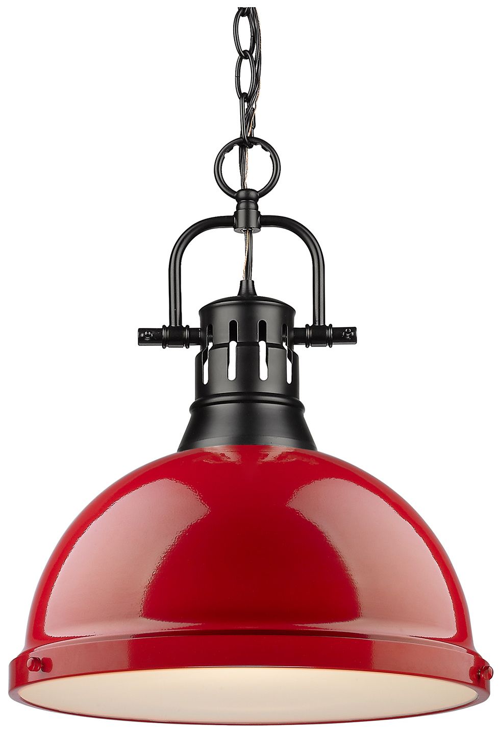 Duncan 14" Wide 1-Light Pendant with Chain in Matte Black with Red