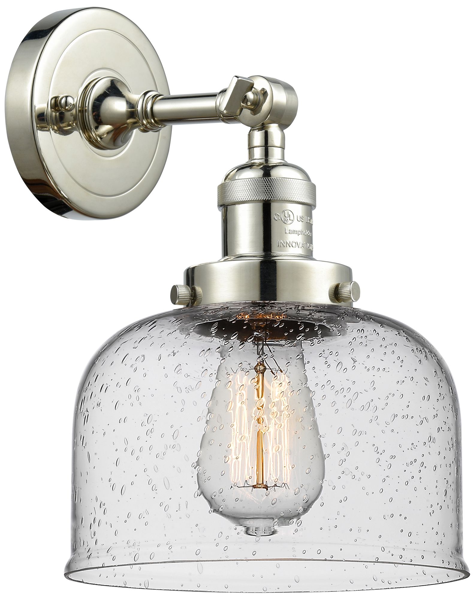 Franklin Restoration Large Bell 8" Polished Nickel Sconce w/ Seedy Sha