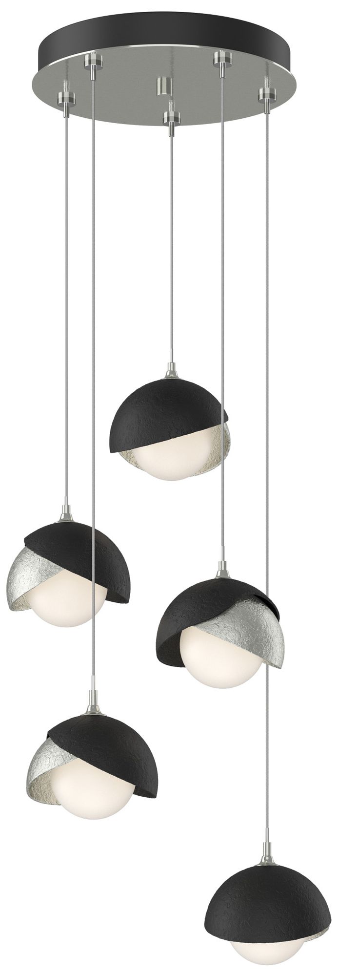 Brooklyn 16"W 5-Light Black Accented Sterling Long Double Shade Pendan