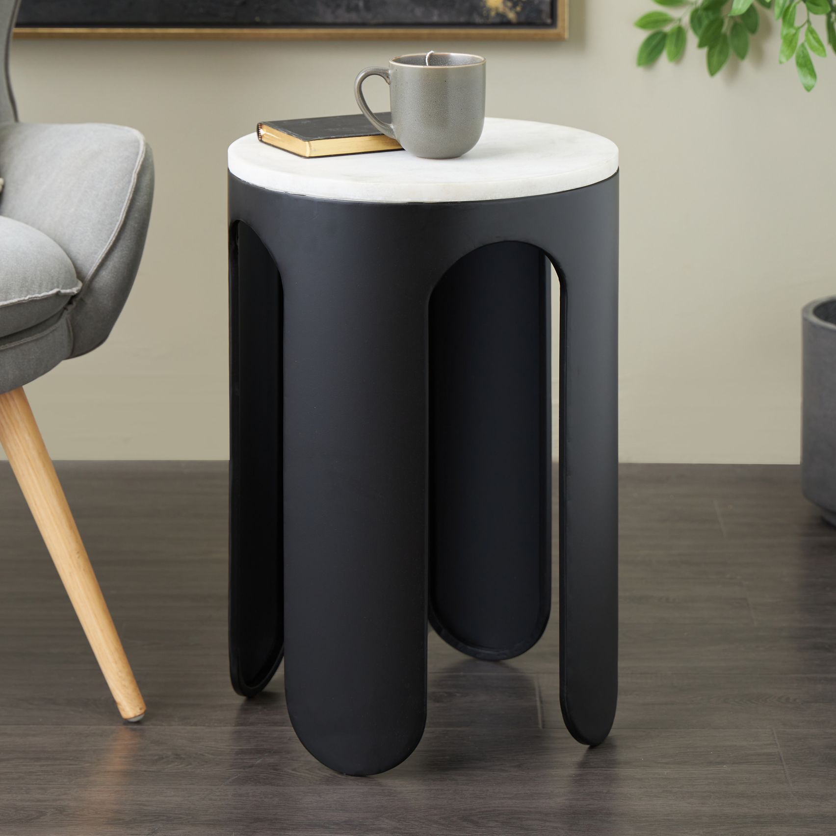Black Metal Modern Accent Table, 15" x 15" x 23"