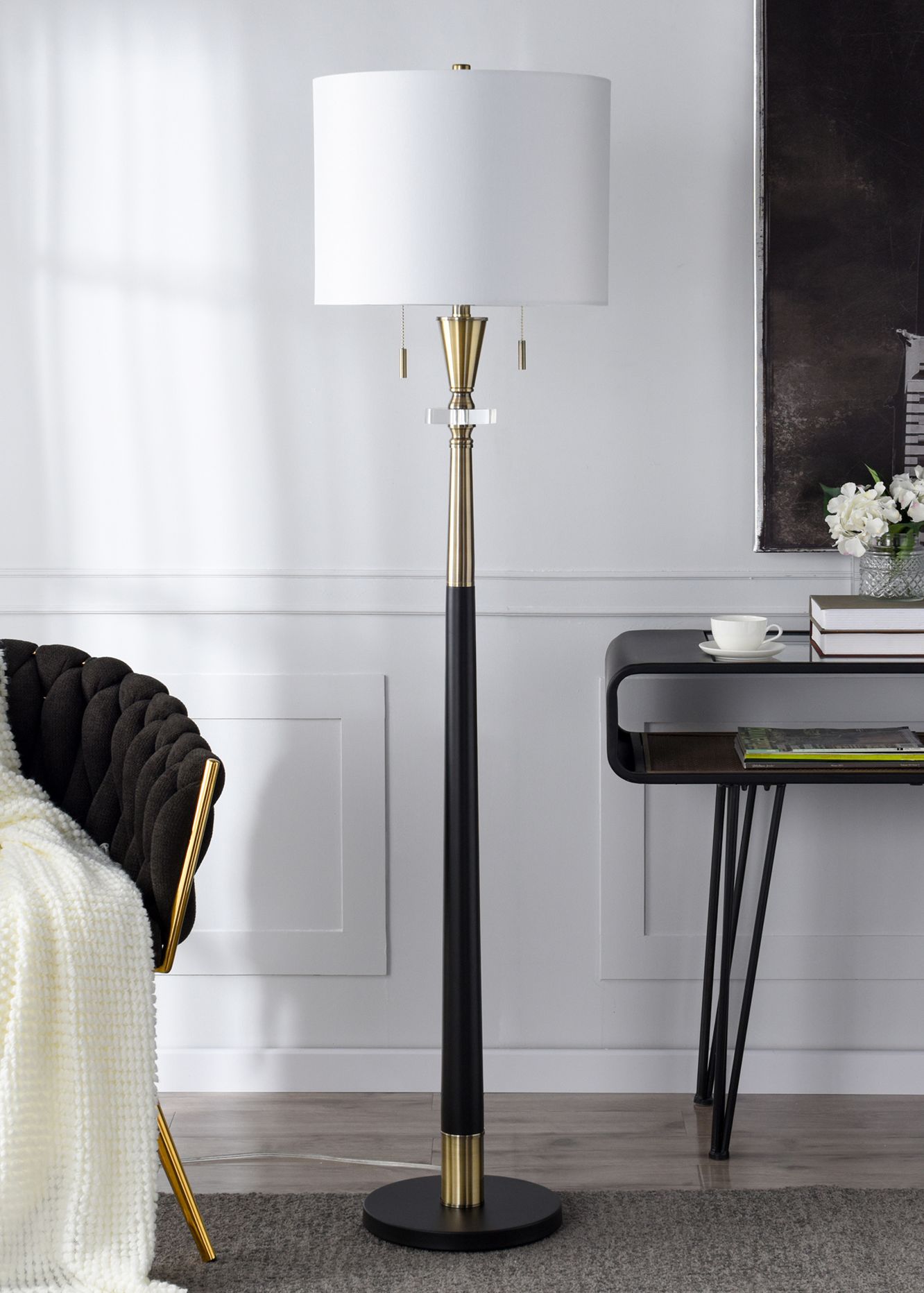 Langston 63.5" High Larson Gold & Black Floor Lamp with White Shade