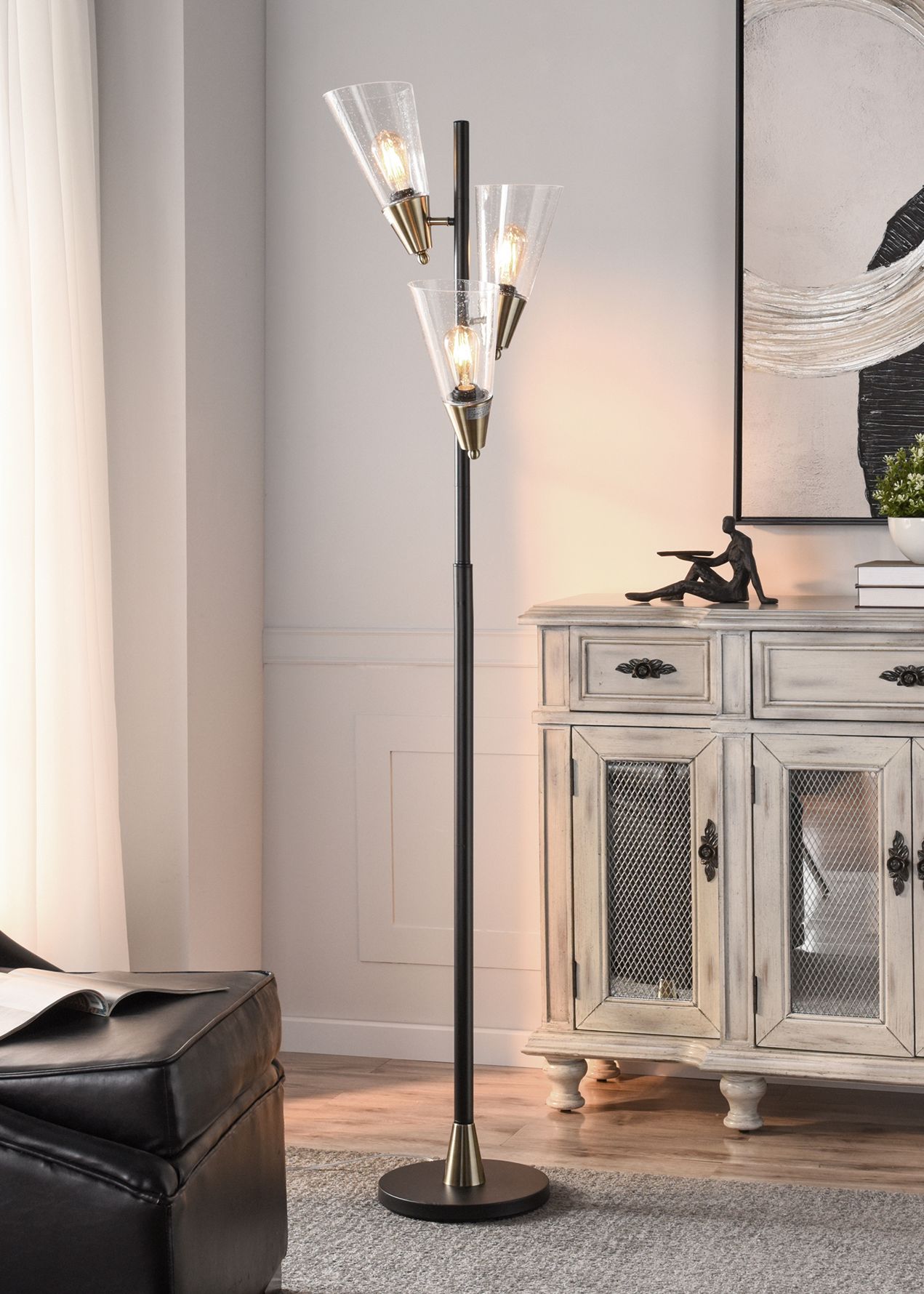 Mercer 70" High Pesch Gold & Black Floor Lamp with Clear Seeded Shade