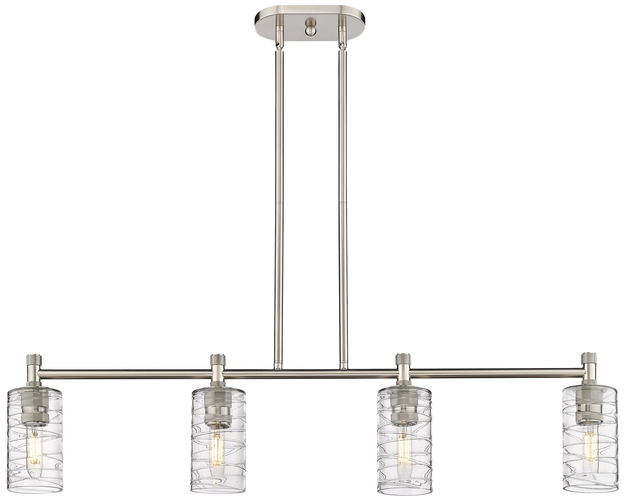 Crown Point 43.75"W 4 Light Satin Nickel Stem Island Light w/ Swirl Sh