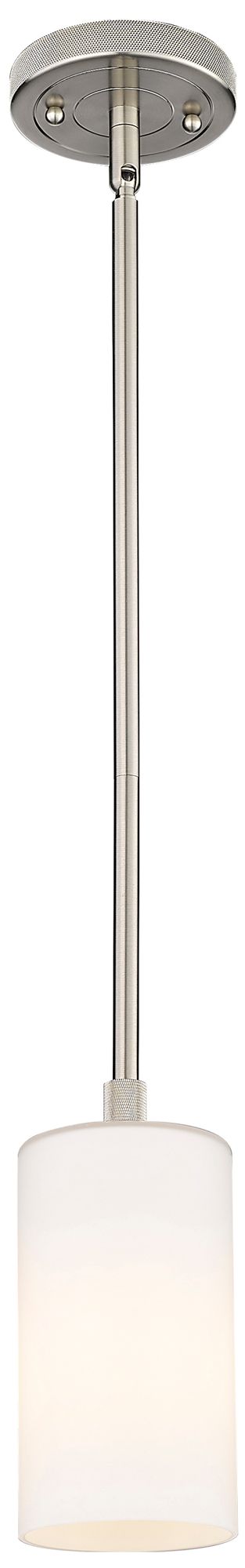 Crown Point 3.88"W Satin Nickel Stem Hung Pendant With Matte White Sha