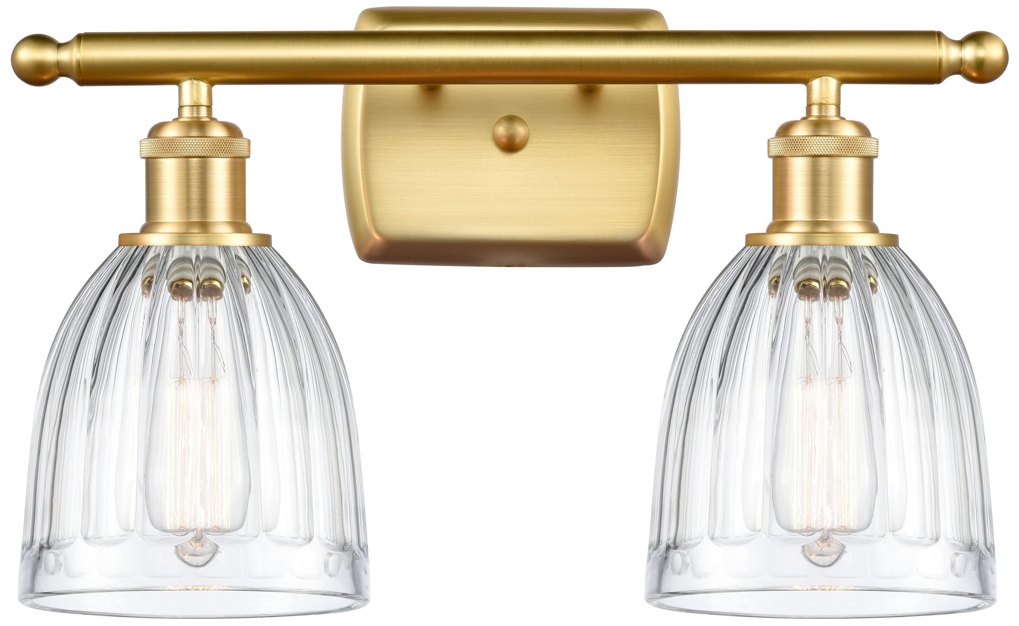 Brookfield 16" Wide 2 Light Satin Gold Bath Vanity Light w/ Clear Shad