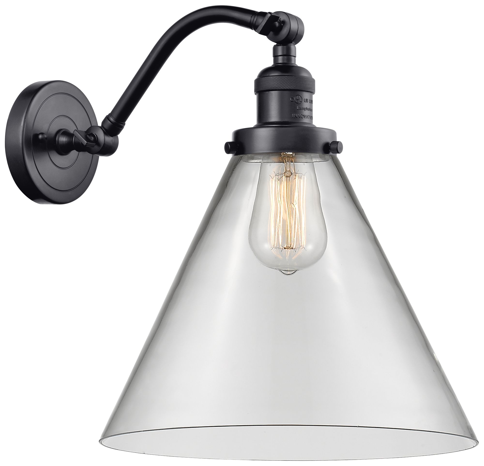 Cone 14" High Matte Black Sconce w/ Clear Shade