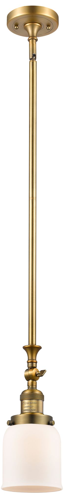 Bell 5" Wide Brushed Brass Stem Hung Tiltable Mini Pendant w/ White Sh