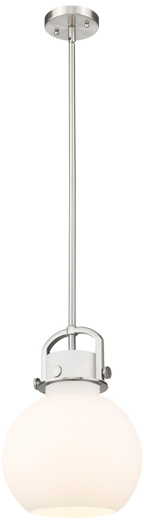 Newton Sphere 10" Wide Stem Hung Satin Nickel Pendant With White Shade