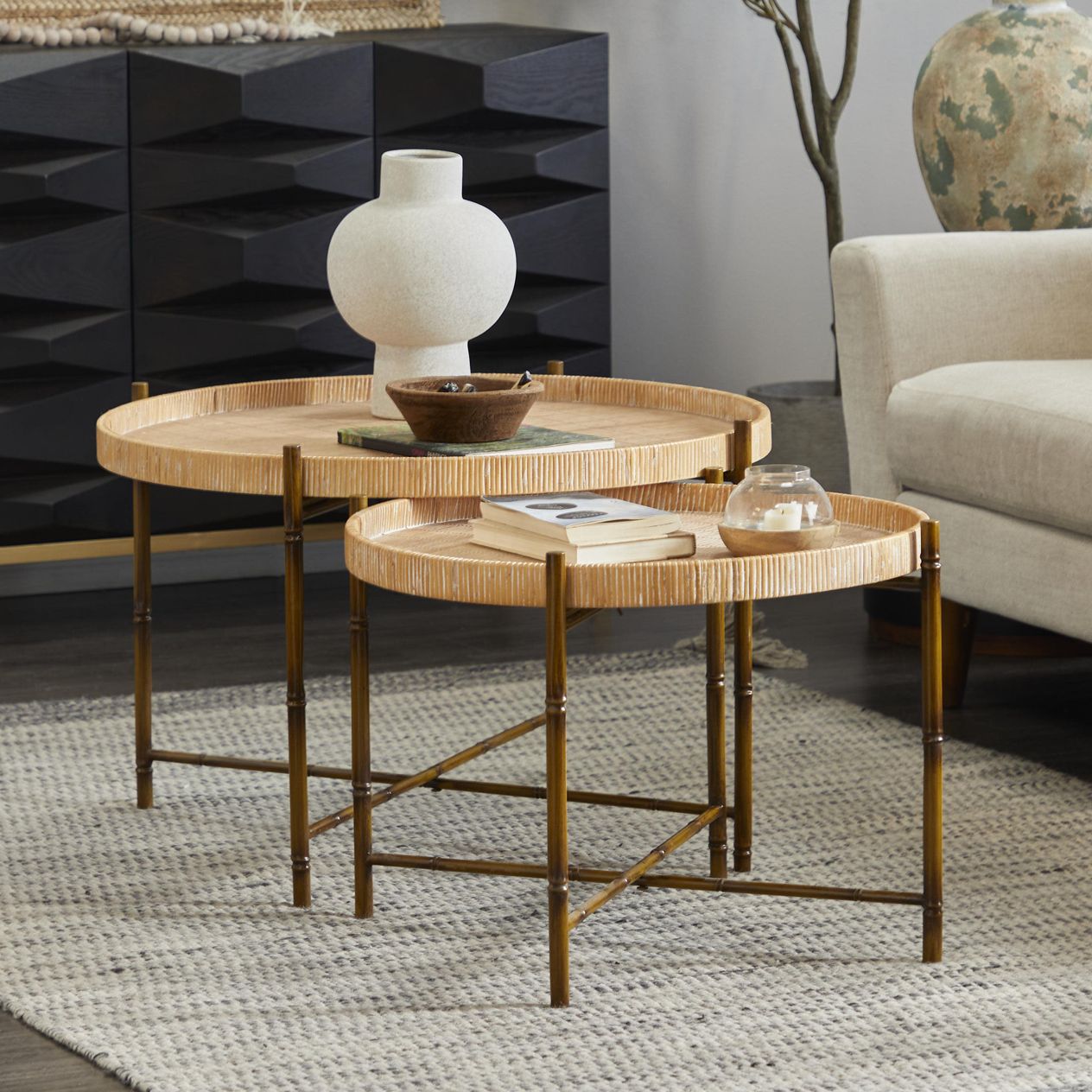 Brown Rattan Modern Coffee Table, S/2 20", 18"H