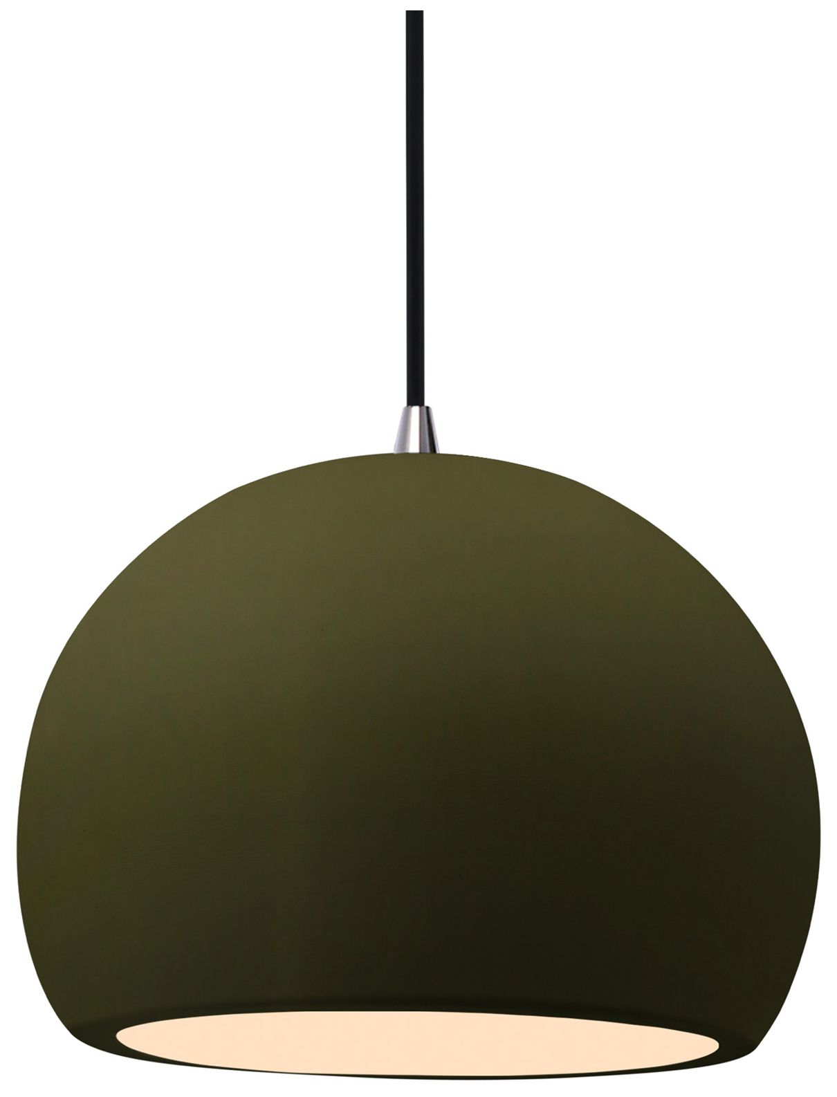 Radiance 10"W Matte Green Frame Brushed Nickel Globe Black Cord Pendan