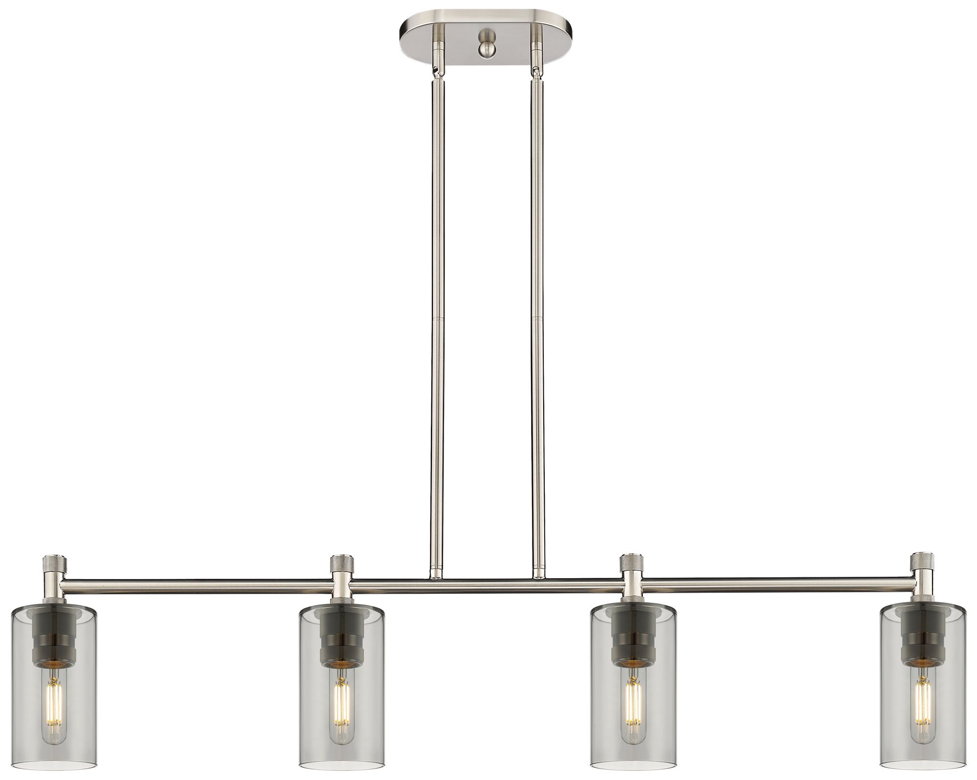 Crown Point 43.75"W 4 Light Satin Nickel Stem Island Light w/ Smoke Sh