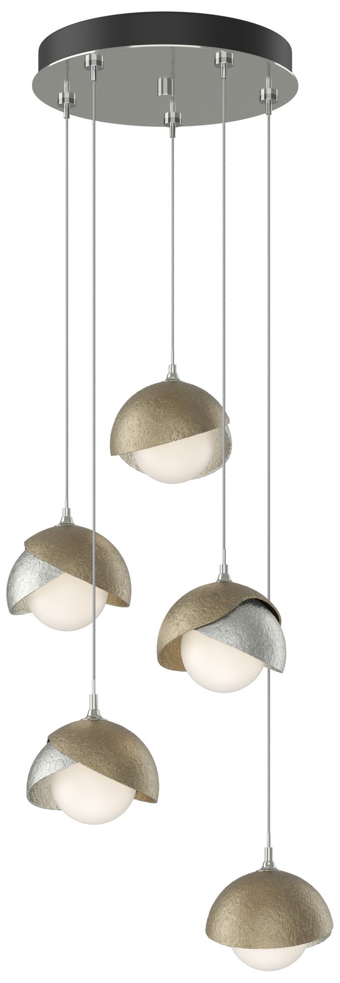 Brooklyn 16"W 5-Light Soft Gold Accented Sterling Long Double Shade Pe