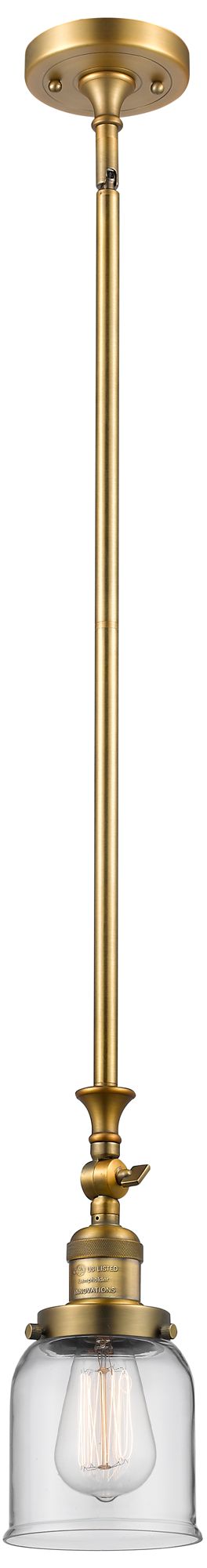 Bell 5" Wide Brushed Brass Stem Hung Tiltable Mini Pendant w/ Clear Sh
