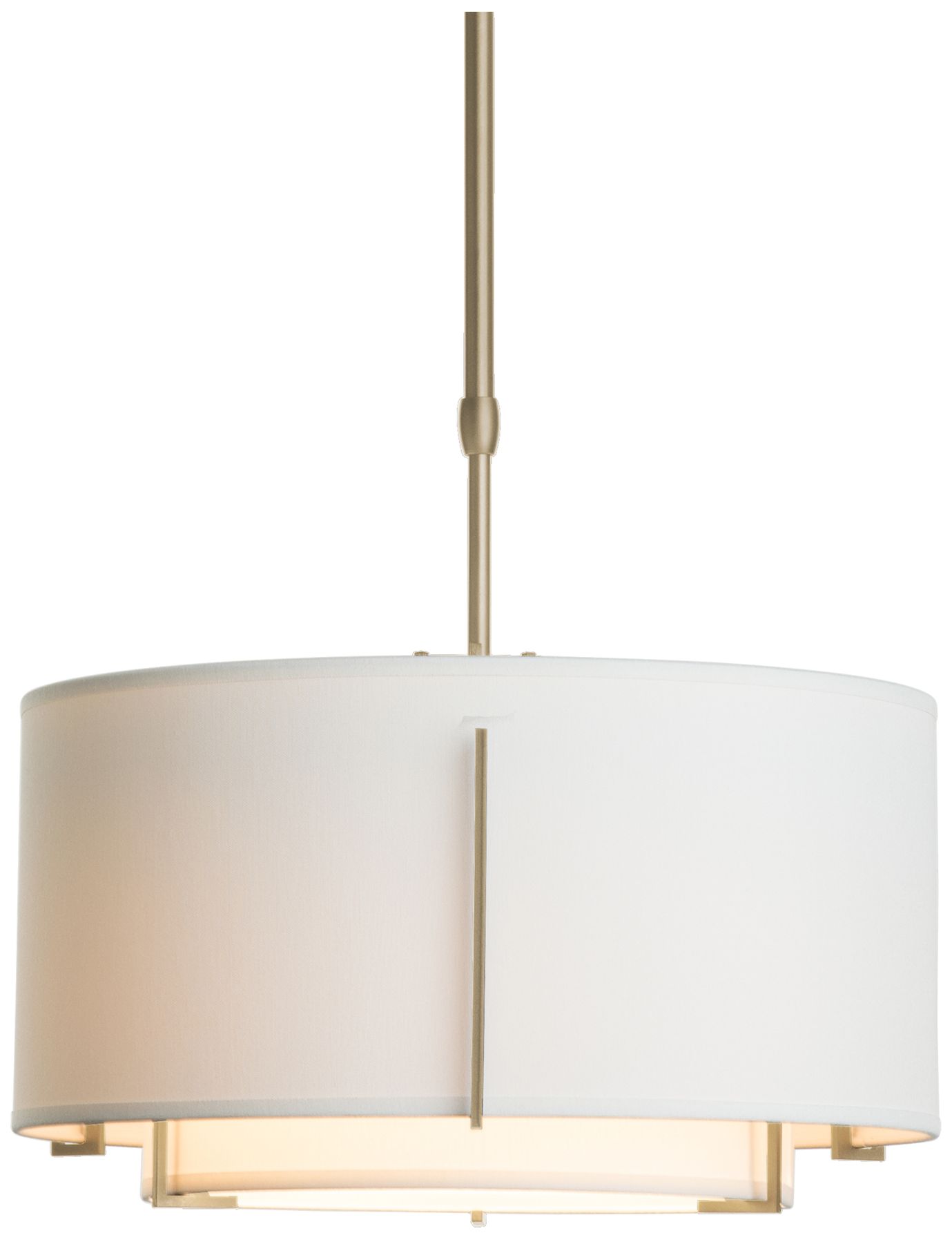 Exos 16.1" Wide Small Soft Gold Pendant With Double Natural Anna Shade