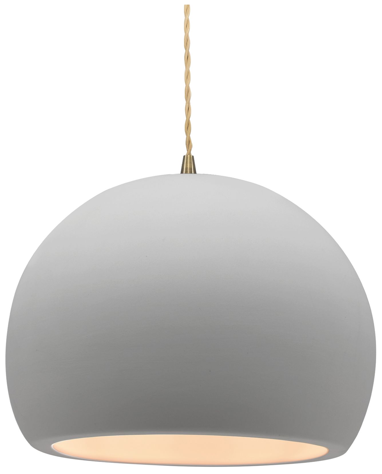 12.25"W Bisque Frame Antique Brass Large Globe Twisted Cord LED Pendan