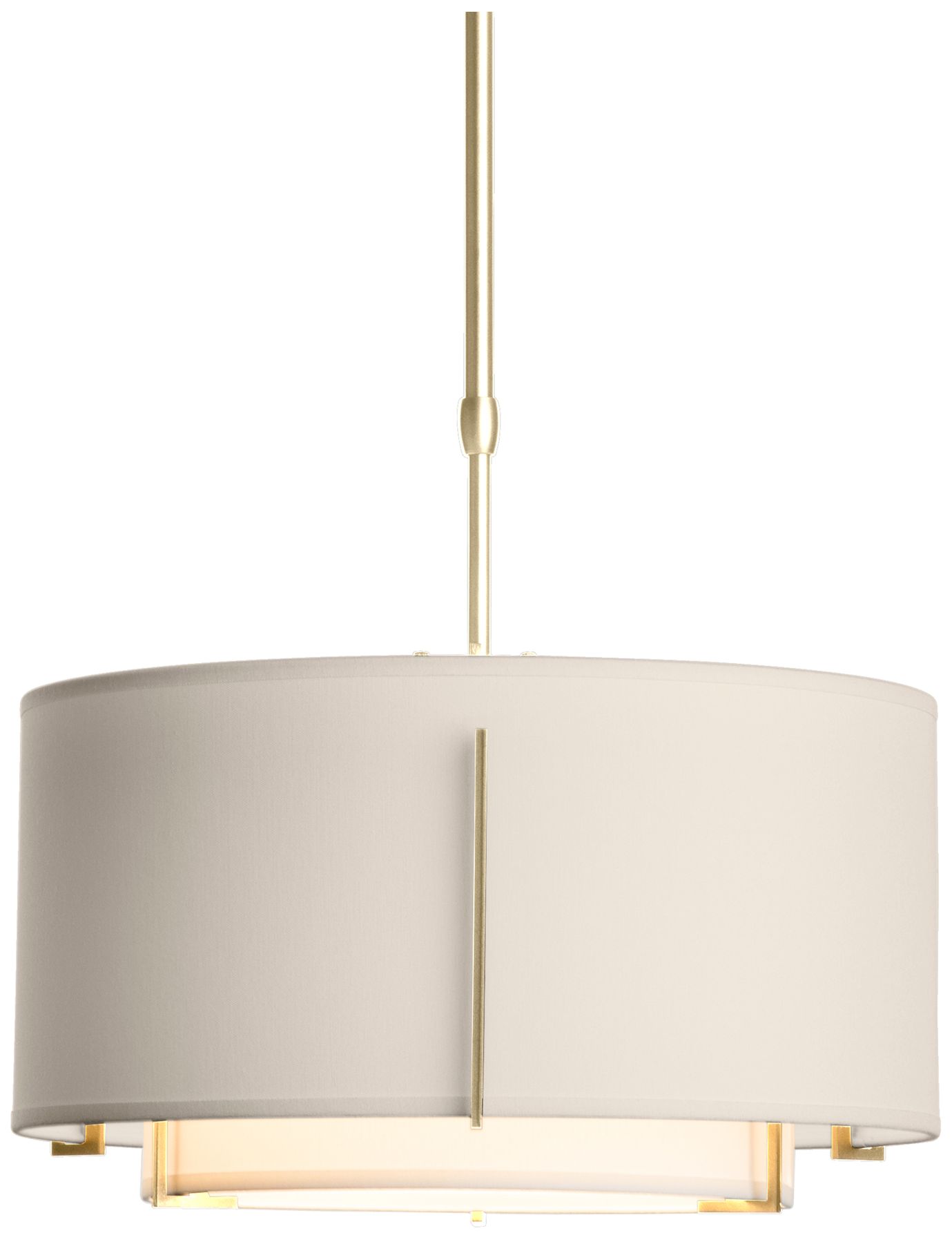 Exos 16.1"W Small Modern Brass Pendant w/ Double Natural Anna & Fl