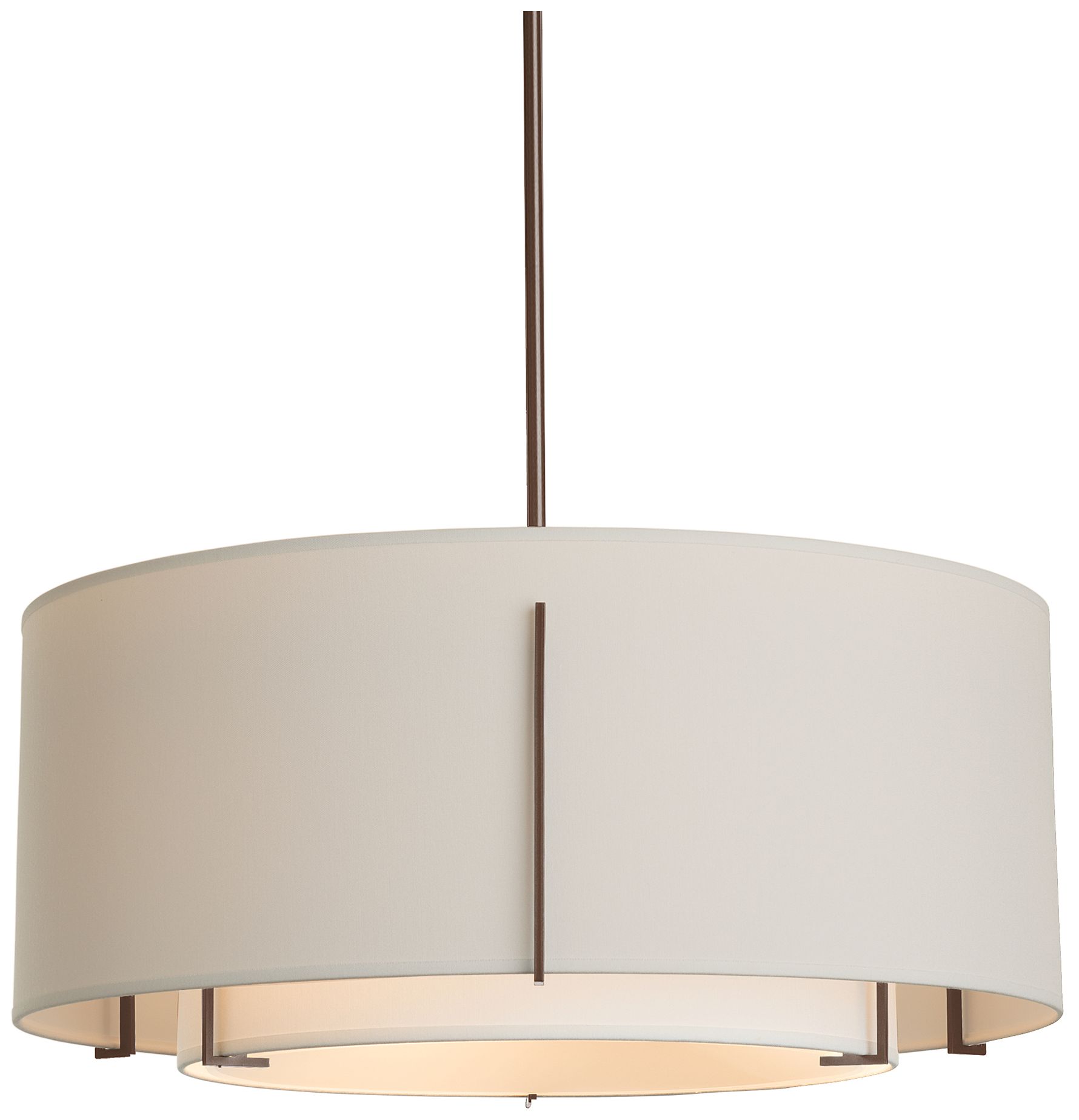 Exos 23" Wide Bronze Pendant With Double Natural Anna & Flax Shade