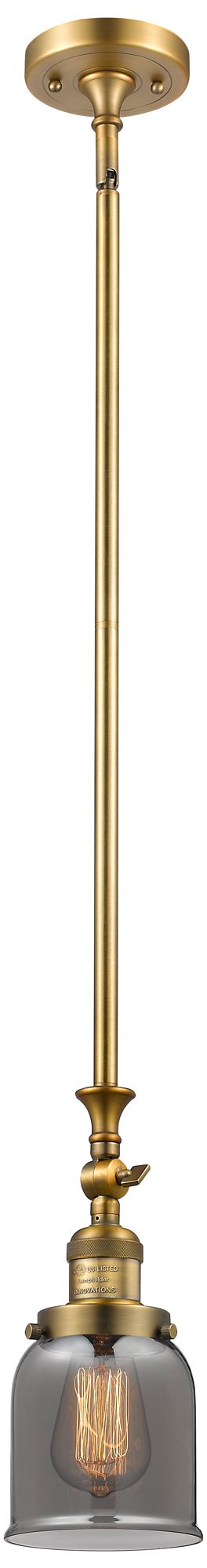 Bell 5" Wide Brushed Brass Stem Hung Mini Pendant w/ Plated Smoke Shad