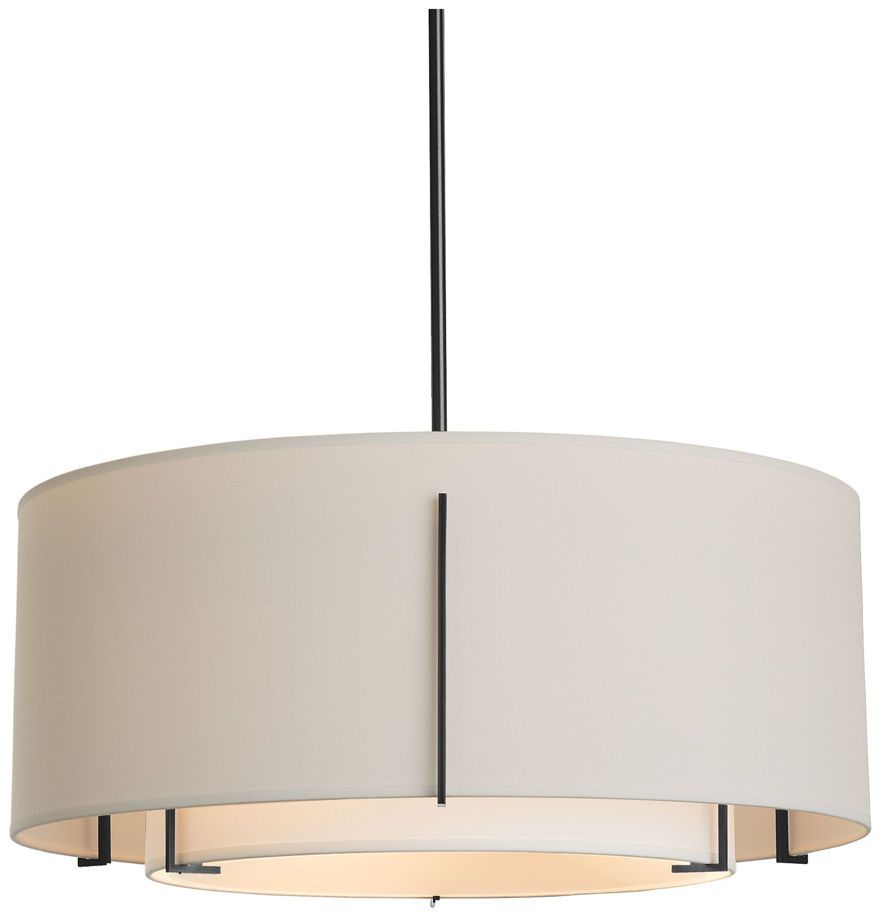 Exos 23" Wide Natural Iron Pendant With Double Natural Anna & Flax