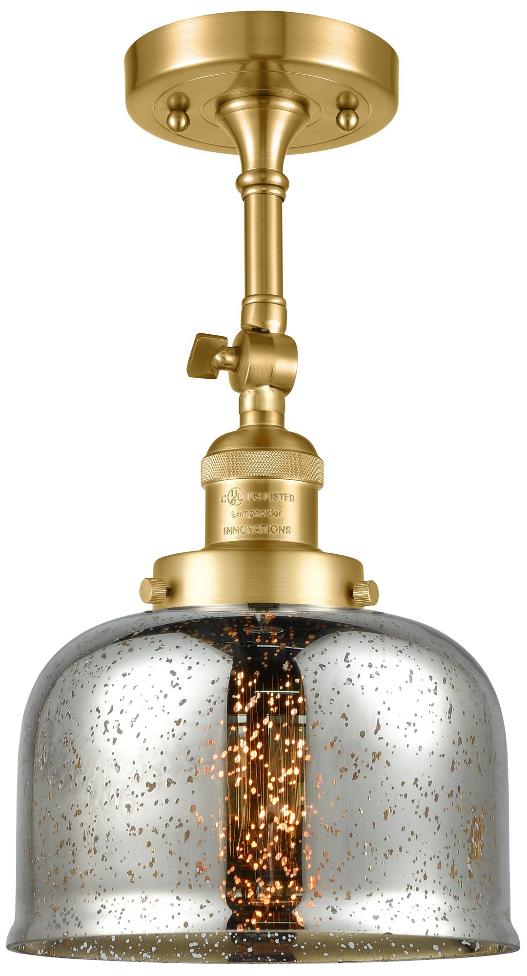 Franklin Restoration Bell 8" Gold Semi Flush Mount w/ Mercury Shade