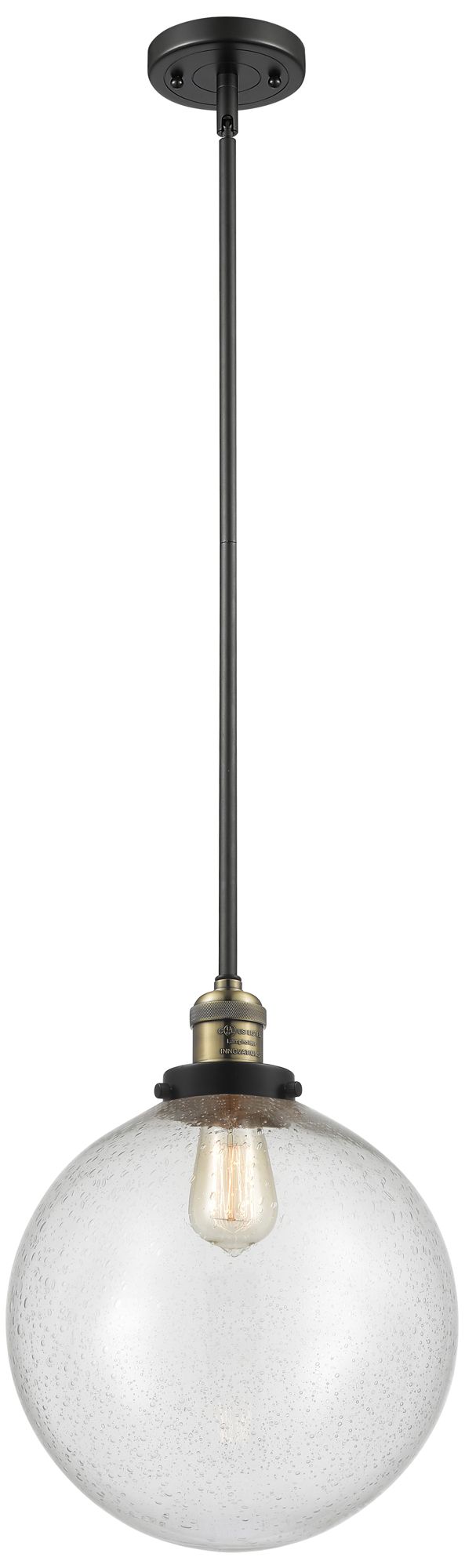 Franklin Beacon 12" Black Brass Stemmed Mini Pendant w/ Seedy Shade