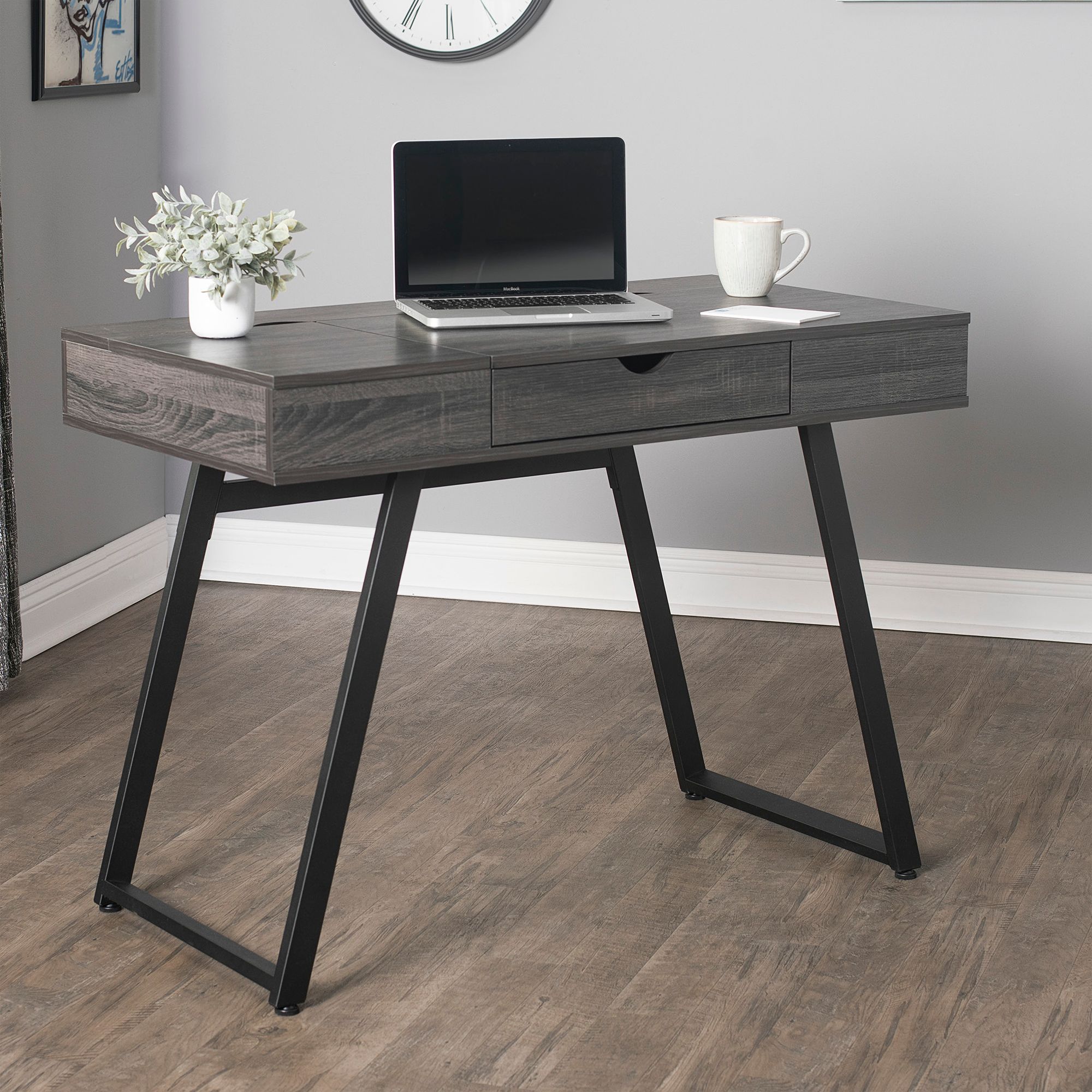 Rockdale 42" Wide Modern Gray Office Writing Desk with USB Ports