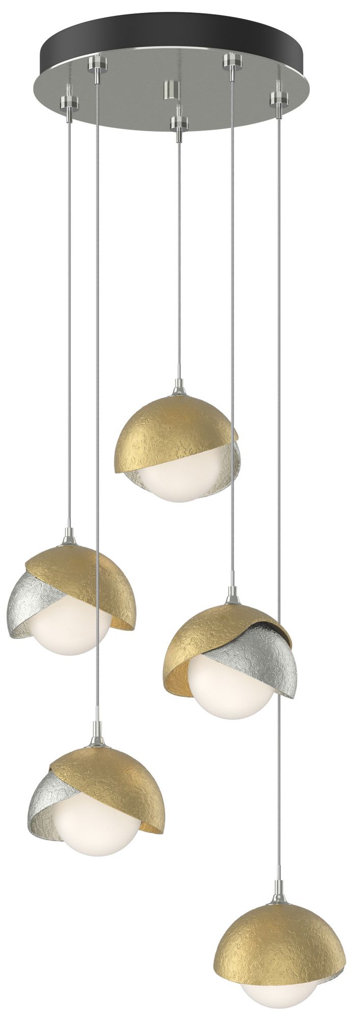 Brooklyn 16"W 5-Light Brass Accented Sterling Long Double Shade Pendan