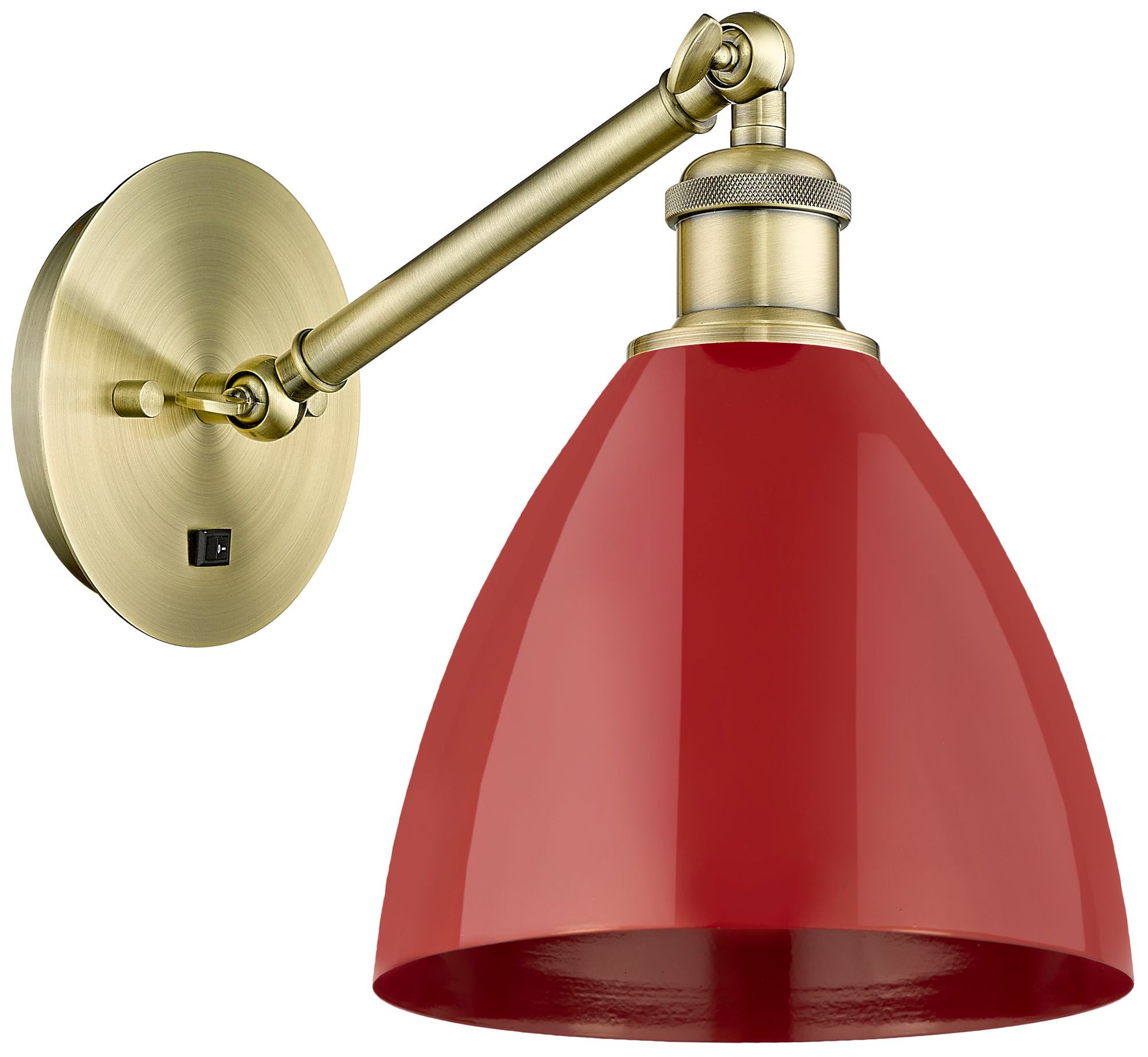 Ballston Plymouth Dome 13.25" High Antique Brass Sconce w/ Red Shade
