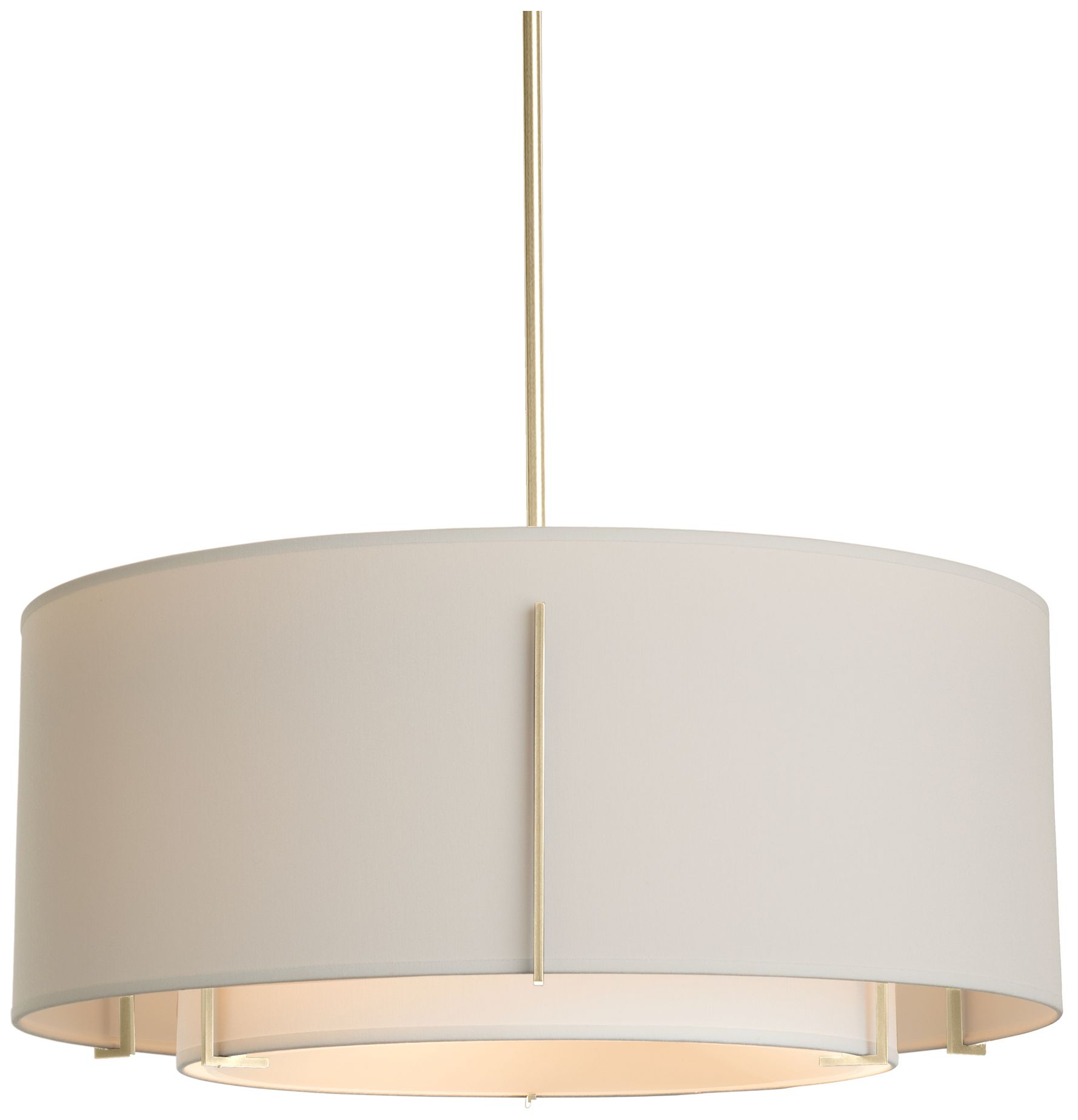 Exos 23" Wide Modern Brass Pendant With Double Natural Anna & Flax