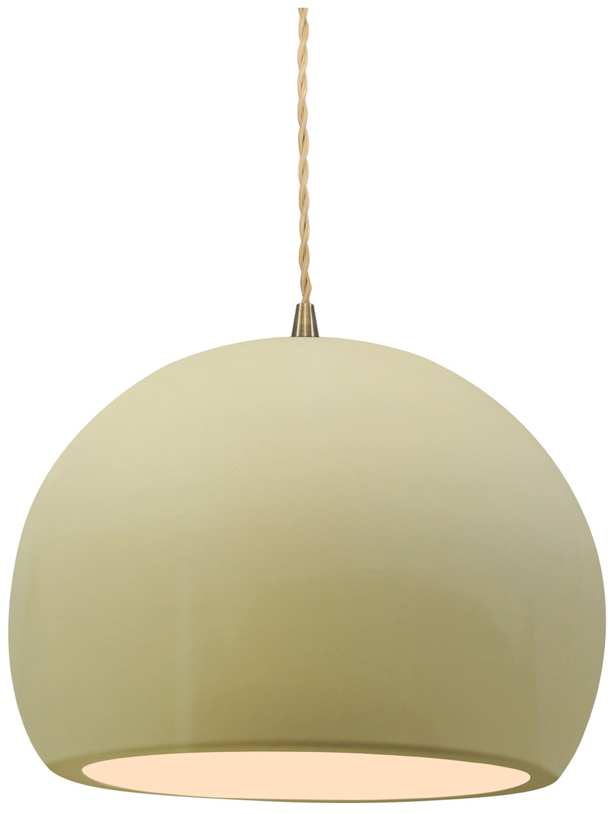 10"W Vanilla Gloss Frame Antique Brass Globe Beige Twisted Cord Pendan