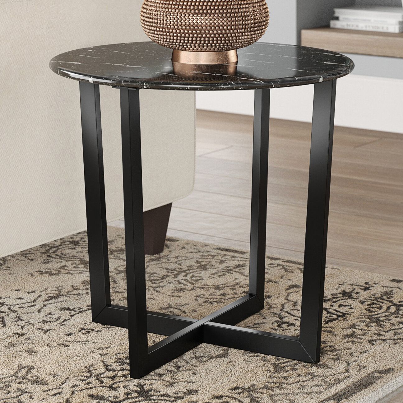 Llona 23 3/4" Wide Black Marble Steel Round Side Table