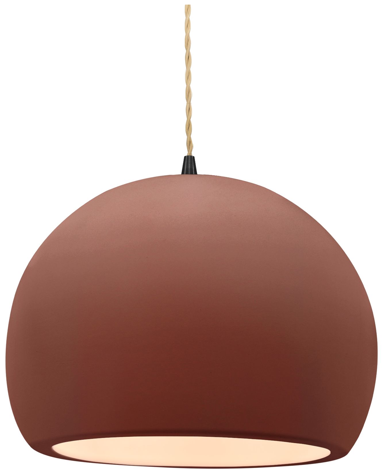 12.25"W Clay Frame Matte Black Large Globe Beige Twisted Cord LED Pend