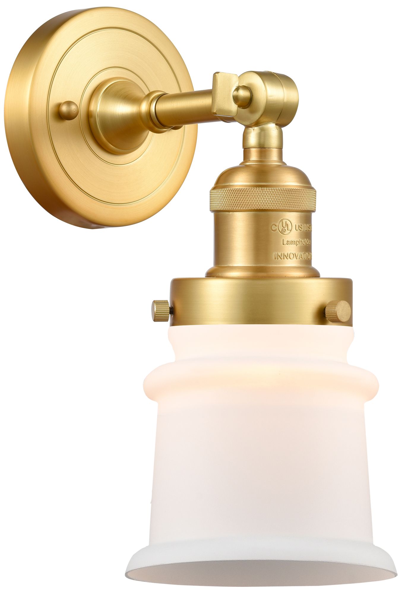 Small Canton 5" Satin Gold Sconce w/ Matte White Shade